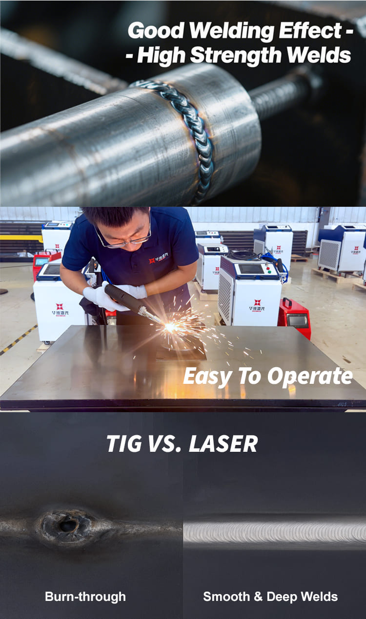 ★ Hurtig hastighed og lille deformation: Svejsehastigheden er 3-5 gange højere end for argonbuesvejsning, og den kan udføre finsvejsning.