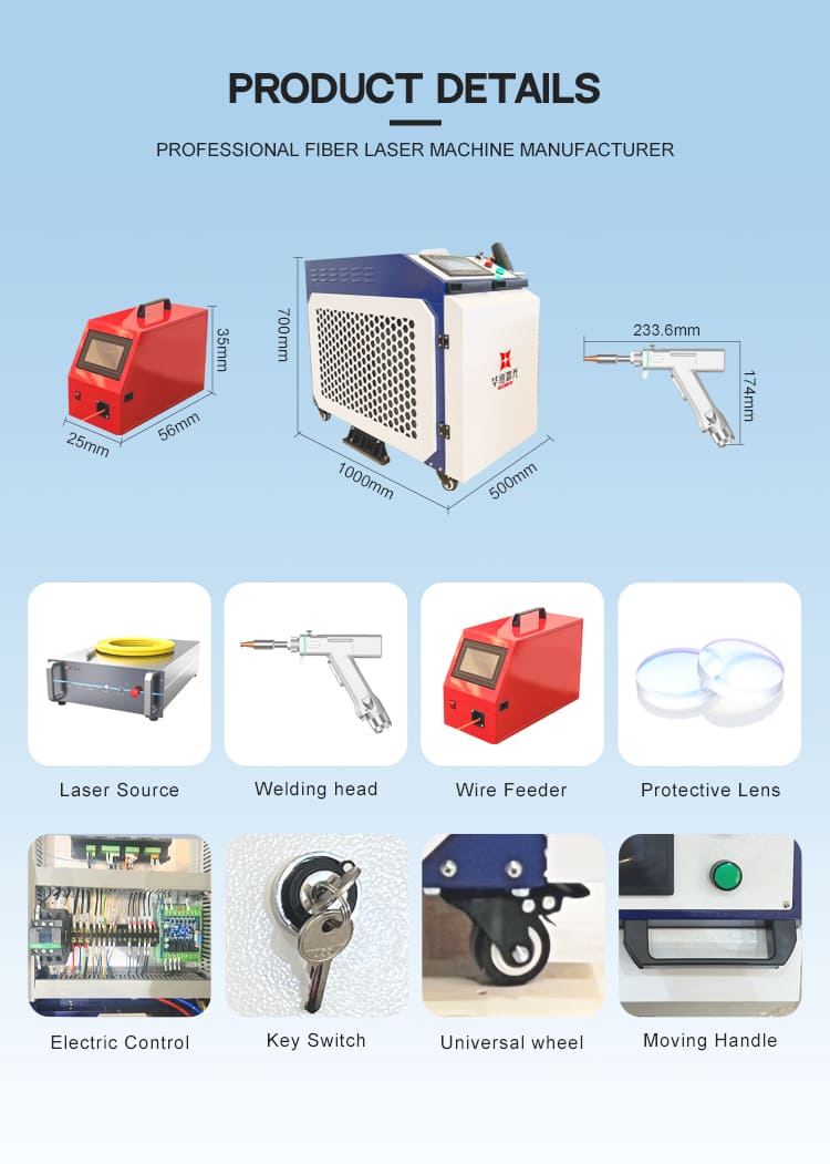 Den 1500W 2000W 3000W fleksible håndholdte lasersvejsemaskine er designet til alsidig metalbearbejdning, der understøtter rustfrit stål, kulstofstål, aluminium og galvaniserede materialer.